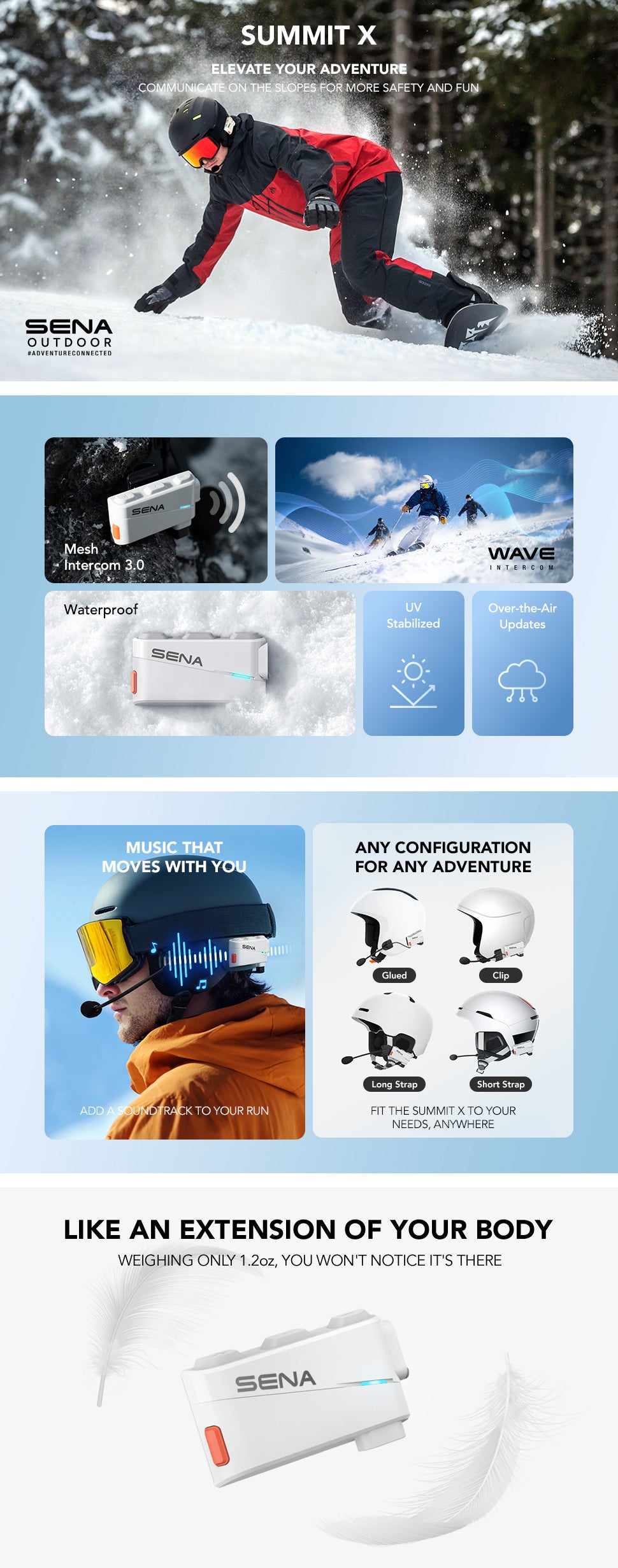 Built for snow-covered slopes, SUMMIT X brings seamless connectivity to your outdoor experience. Whether you're skiing, snowboarding, or sledding, enjoy hands-free communication without limits. With versatile mounting options and superior intercom range, SUMMIT X is ready for every kind of outdoor activity.